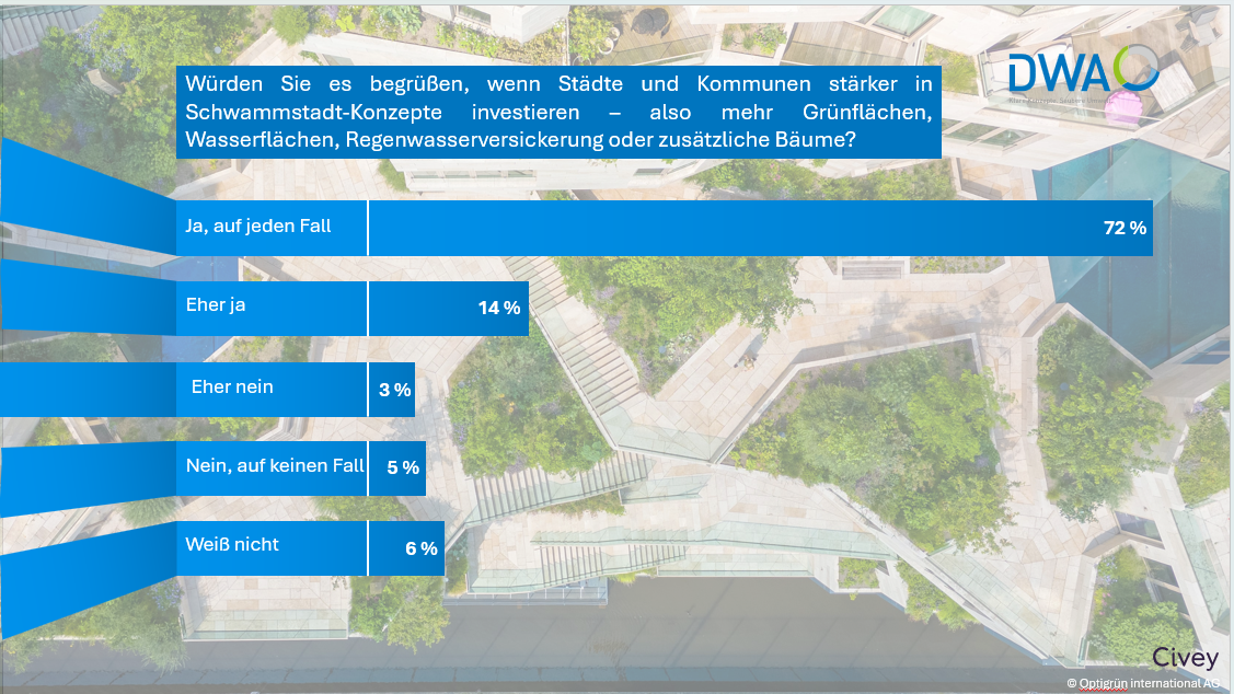 86 Prozent der Bürgerinnen und Bürger wollen mehr Grün, Blau und Wasserrückhalt in den Städten